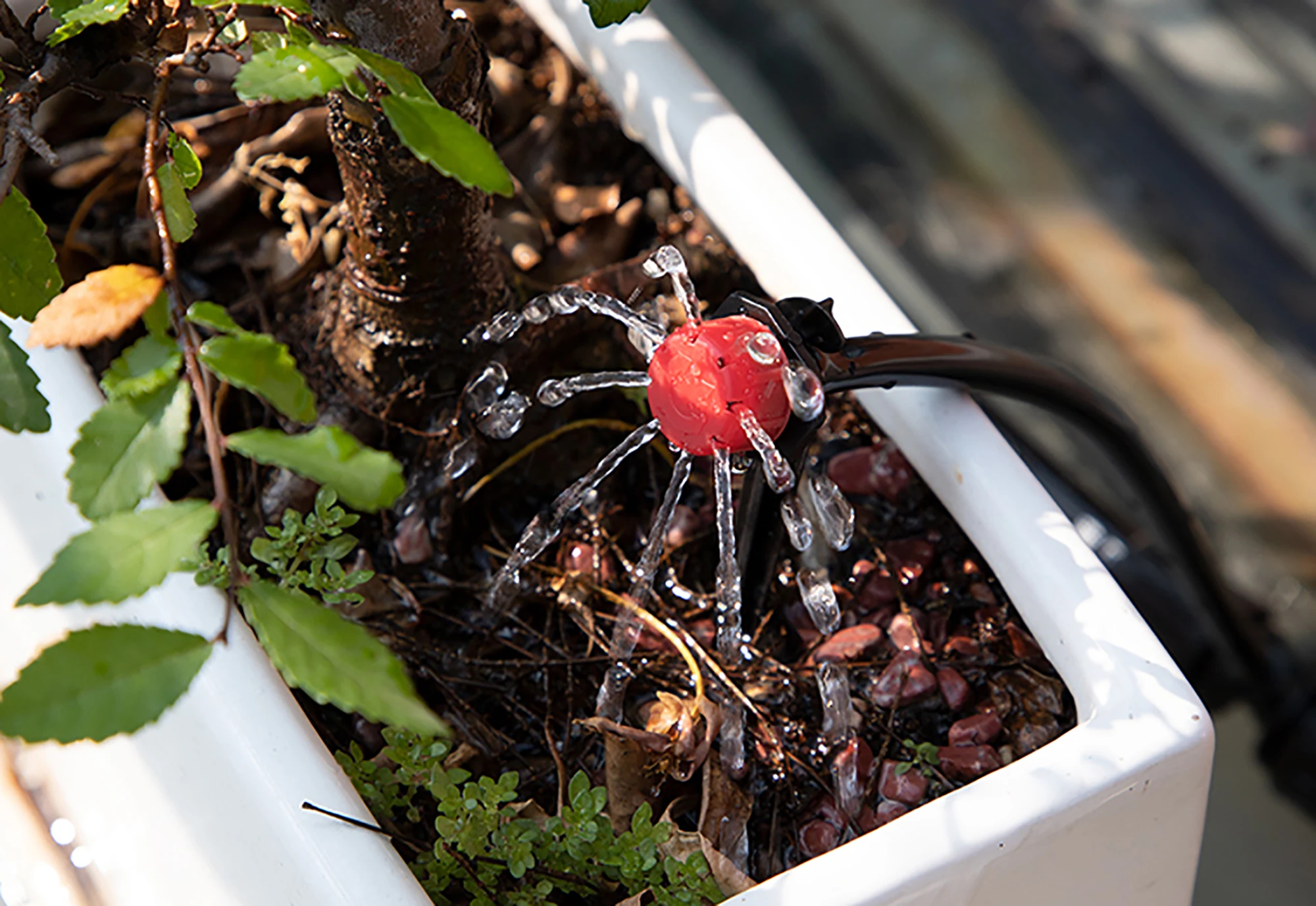 The 8-hole red adjustable flow dripper can be adjusted to sprinkle, drip and close. Turn to the left to close, turn to the right to adjust the water flow. The maximum distance of the water can reach 1.3 meters in diameter. The dripping spray can meet your various needs. The normally open water source can be adjusted to a few seconds for one drip ,you can also choose to completely close a single dripper temporarily when not in use. (Turn the red cap of the dripper to adjust the flow or close the dripper).