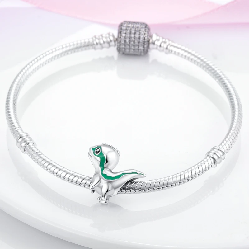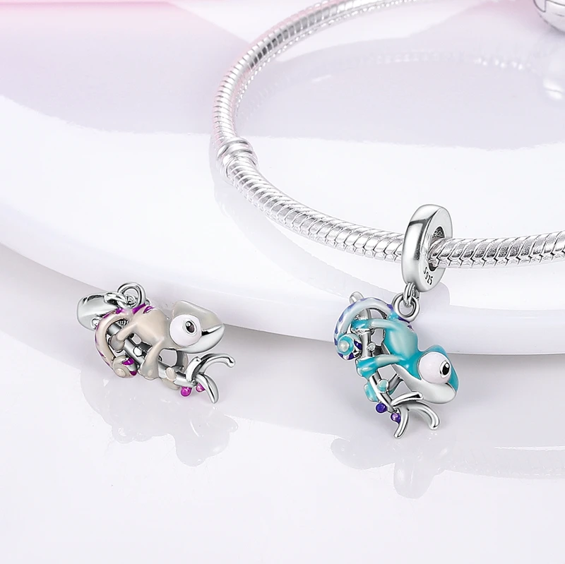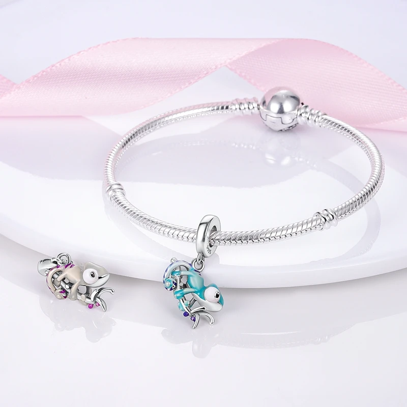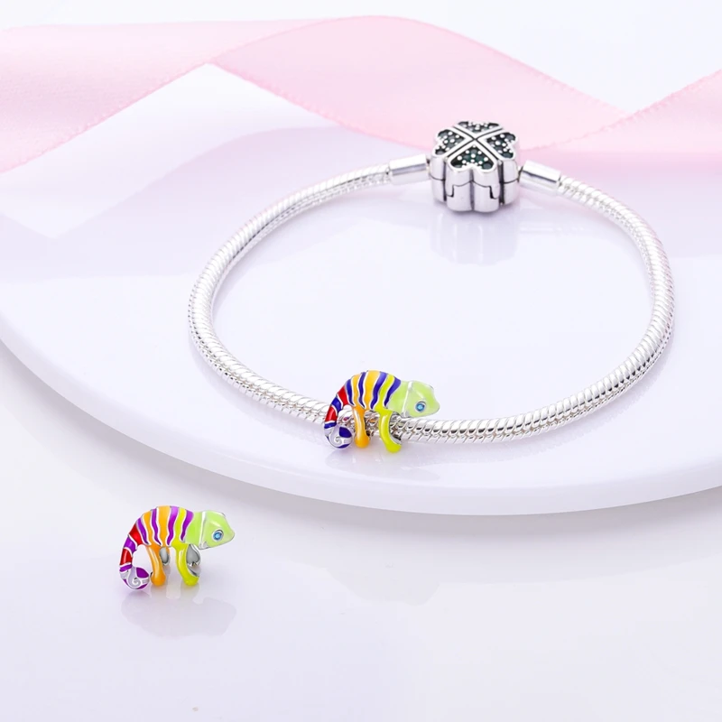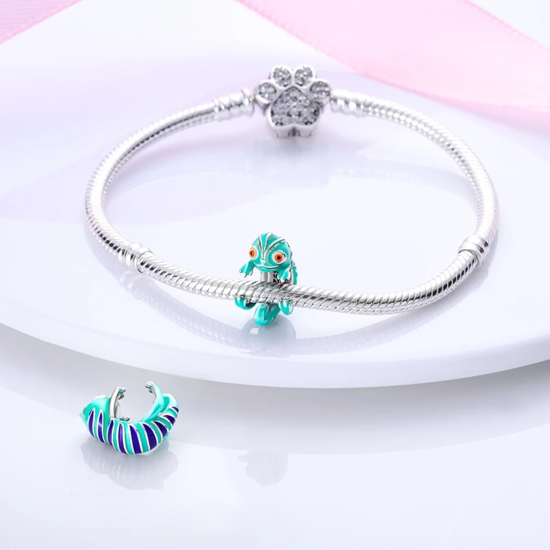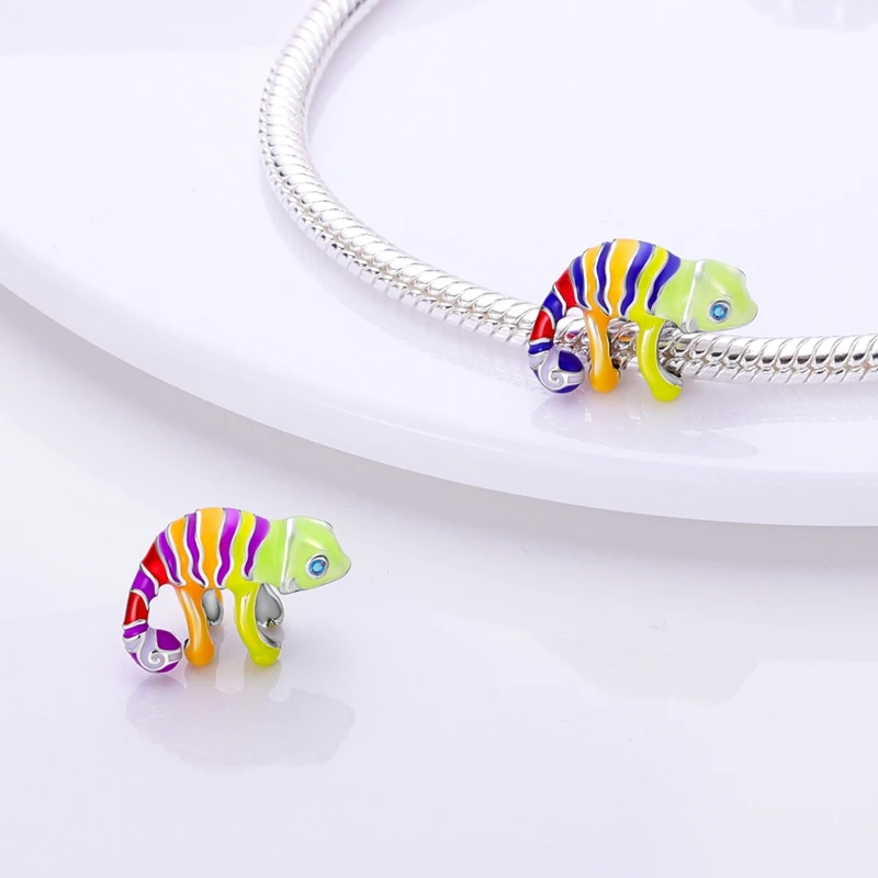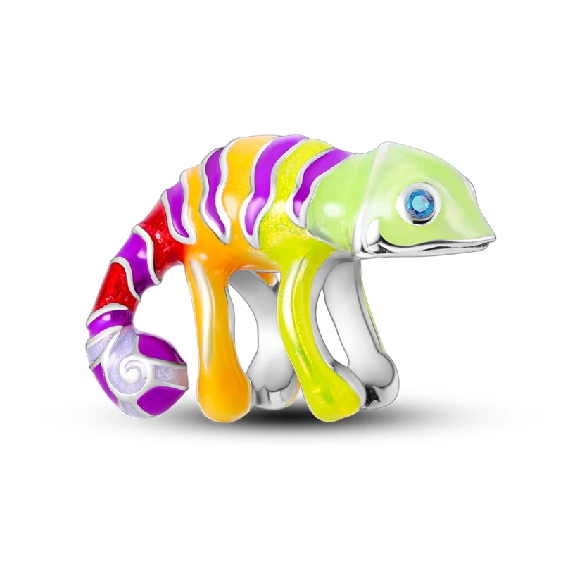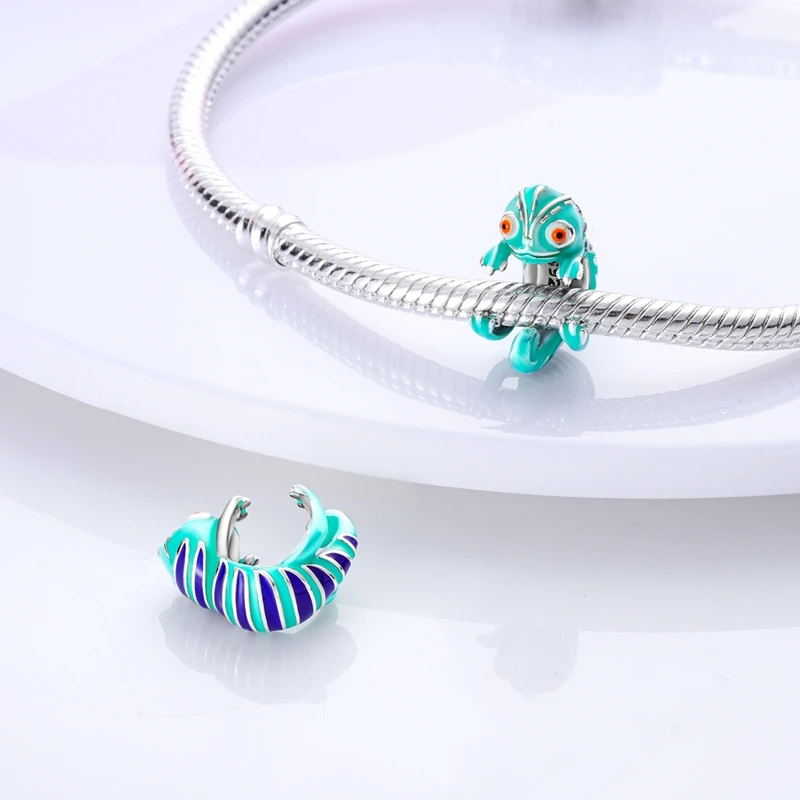 Silver Chameleon Glowworm Dangle Charms Fit Original Chain Bracelet
