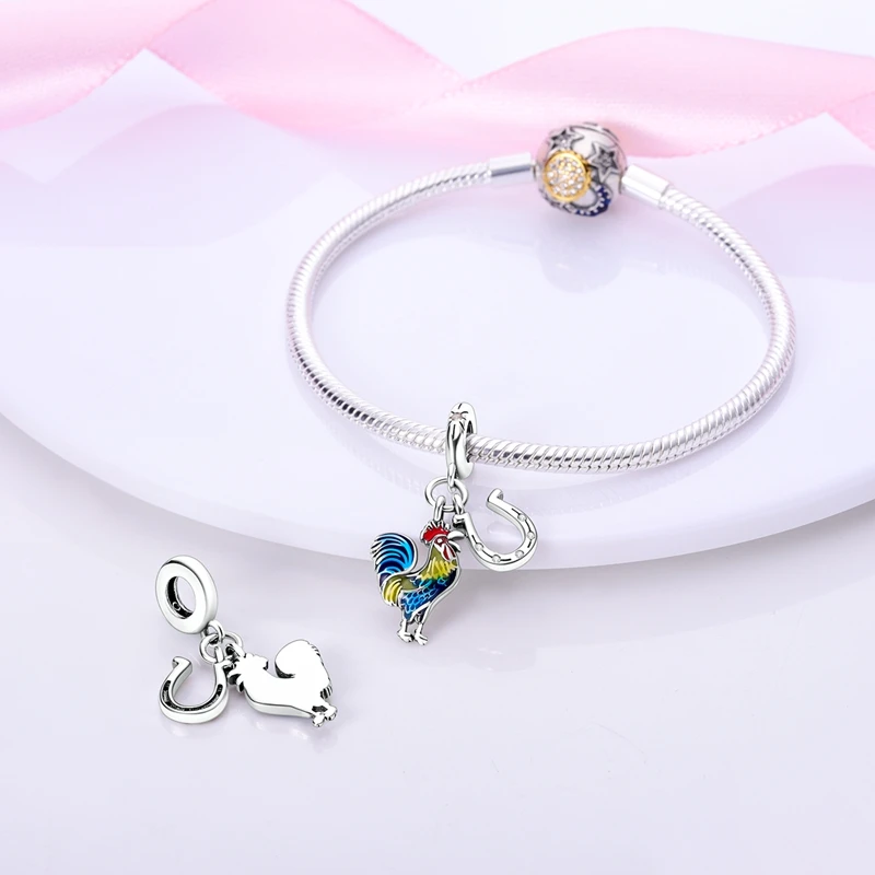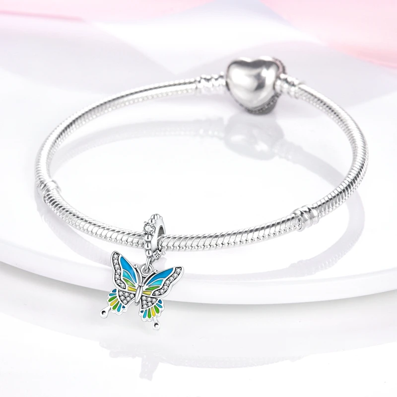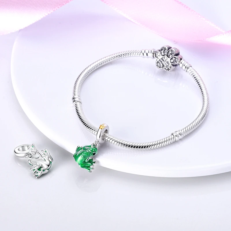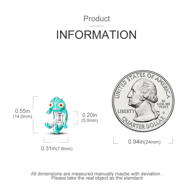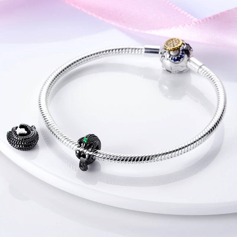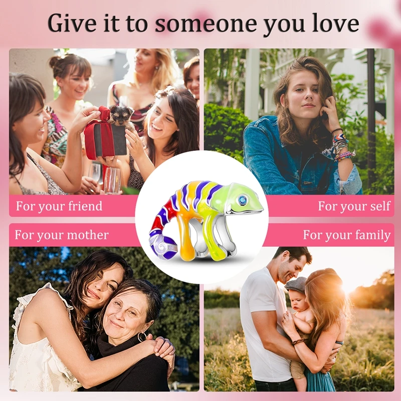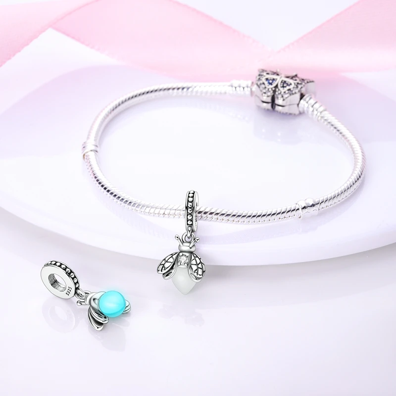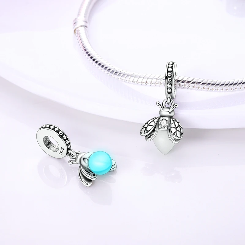 Silver Chameleon Glowworm Dangle Charms Fit Original Chain Bracelet