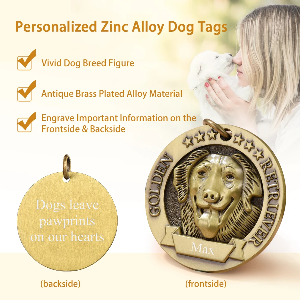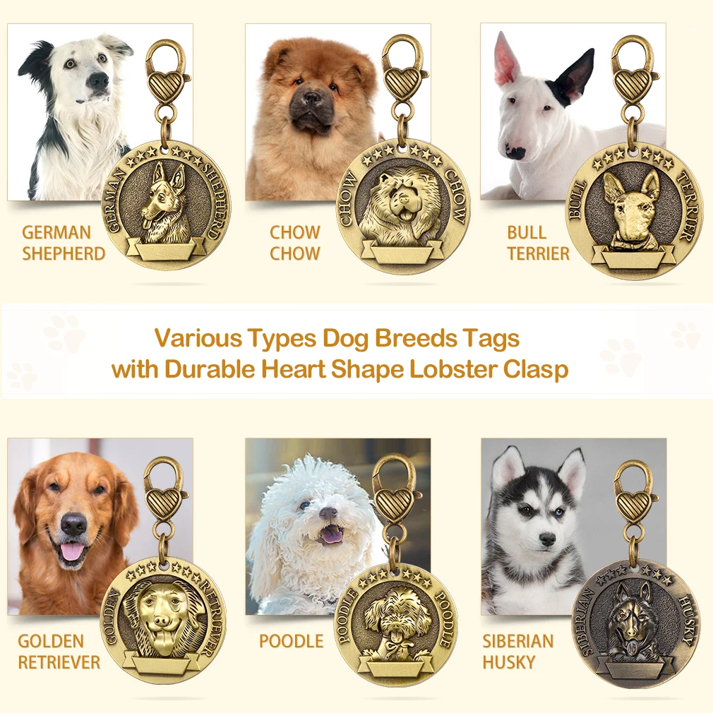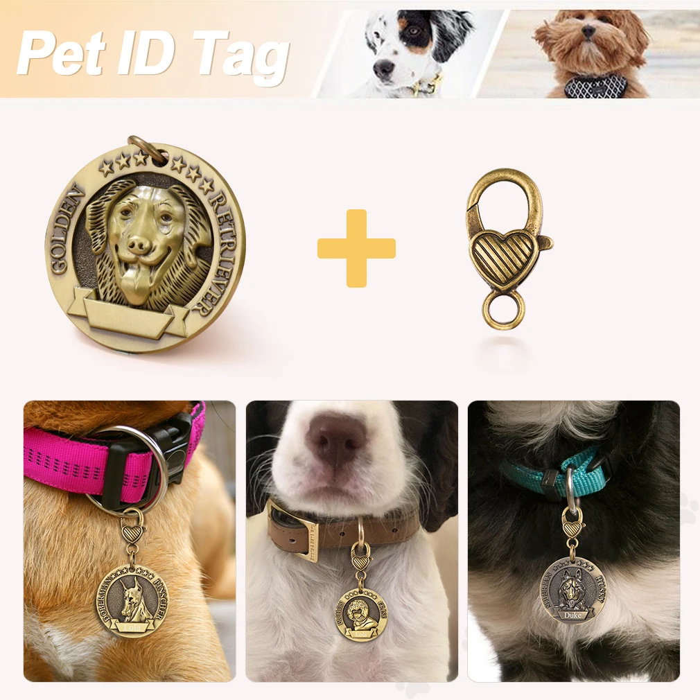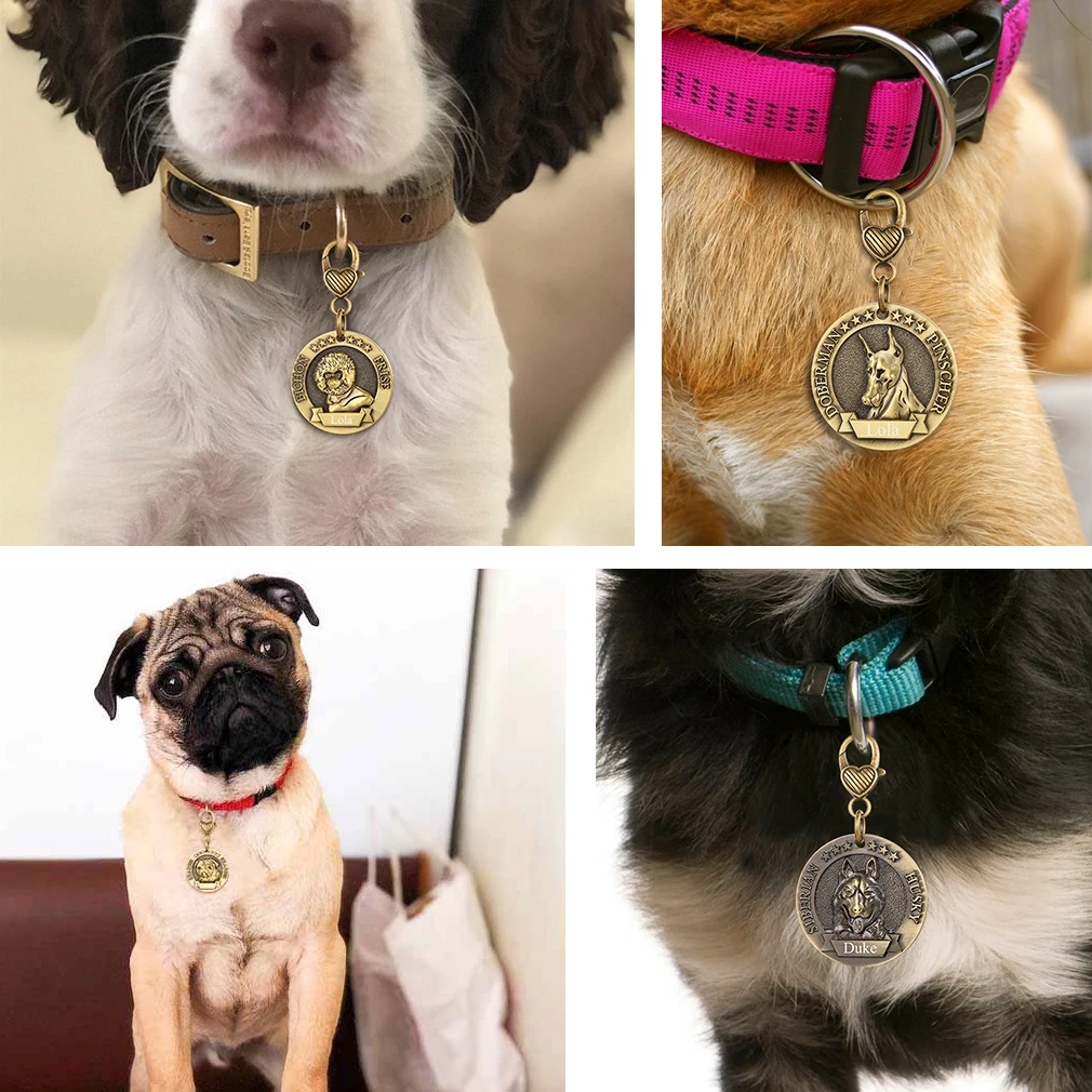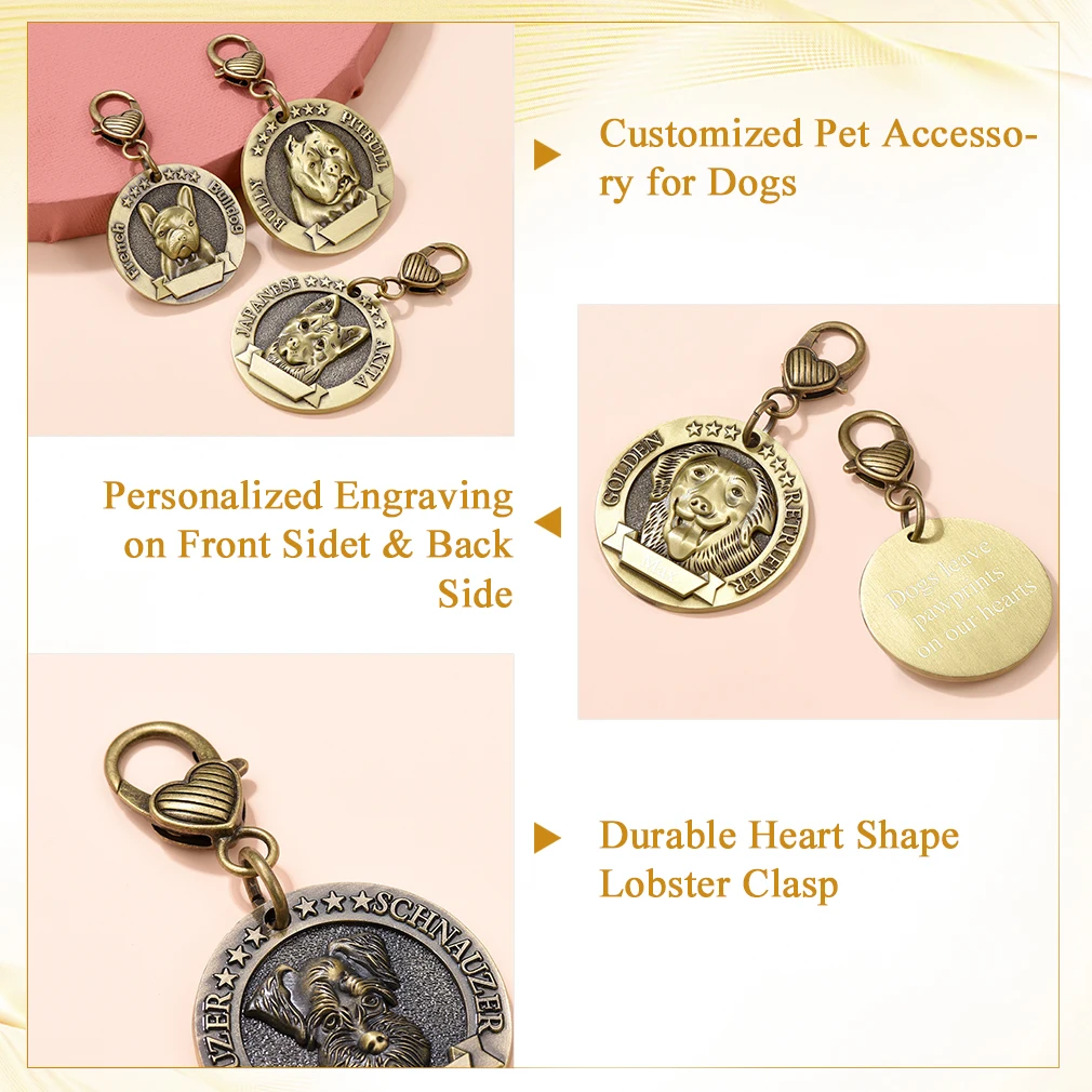 U7 Custom Dog's Name Round ID Tag Pendant for Choker Keychains 3D Embossed Kinds Dogs Personailized Unisex Jewelry Gift for Dog Person Owner