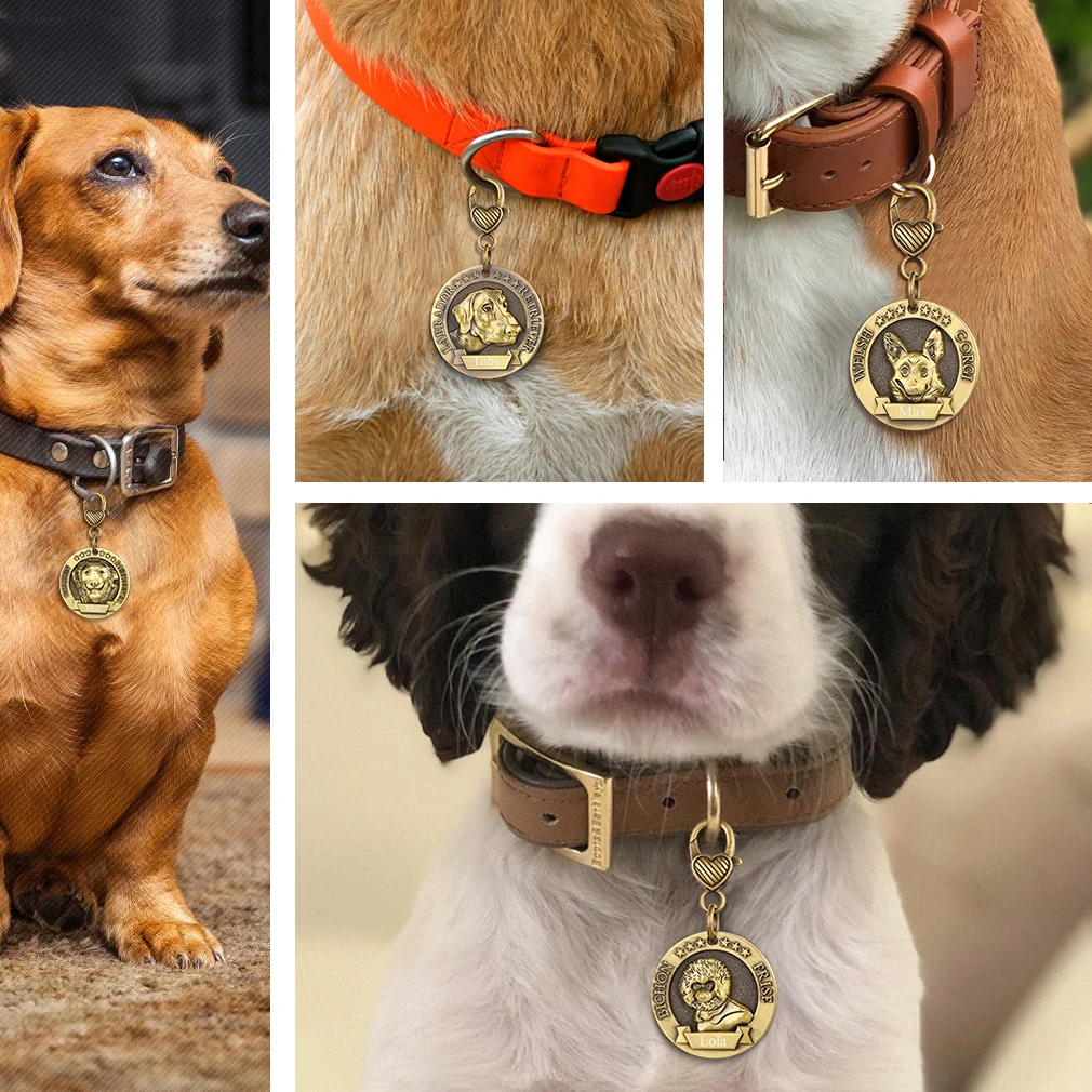 Custom Dog's Name Round ID Tag Pendant for Choker Keychains