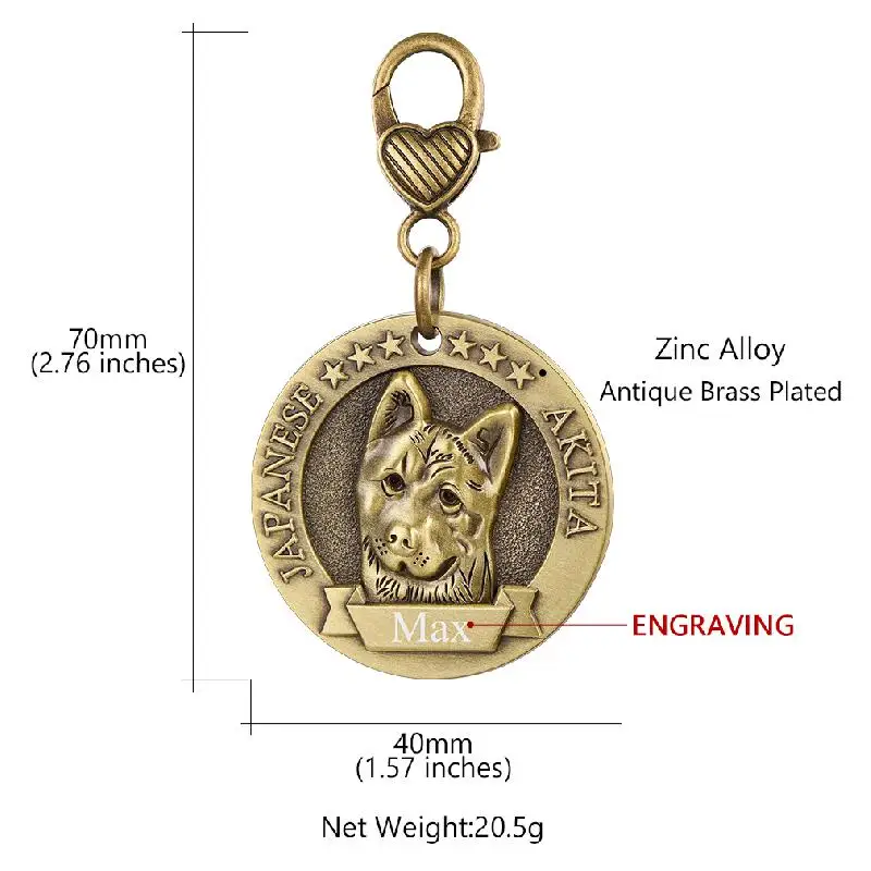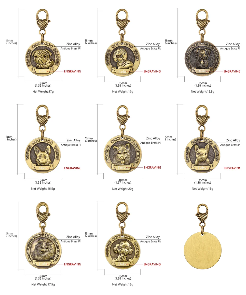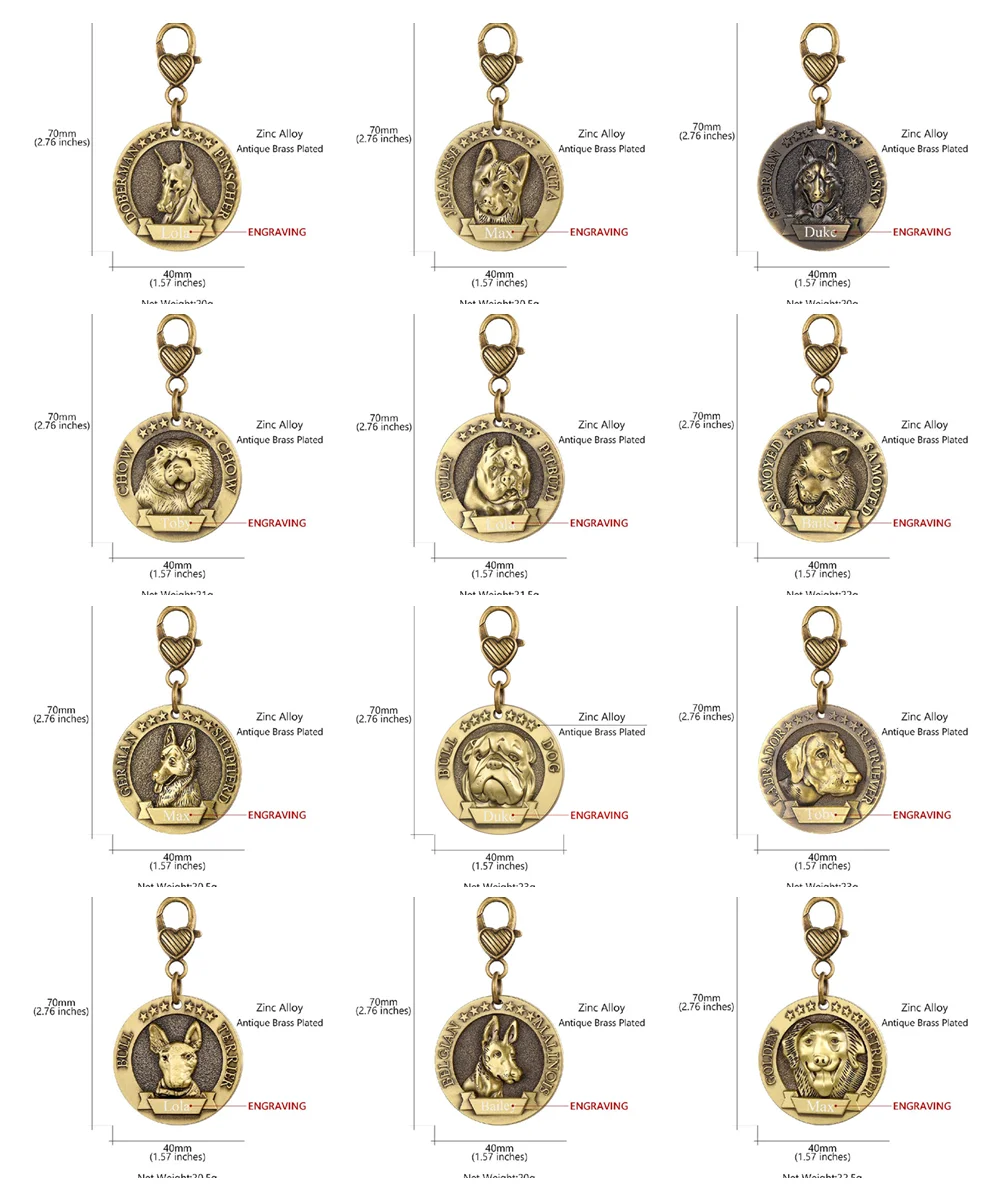 engraving limit for front side 8 character ( under the dog) ;engraving limit for back side :4lines at most, 25 characters/line