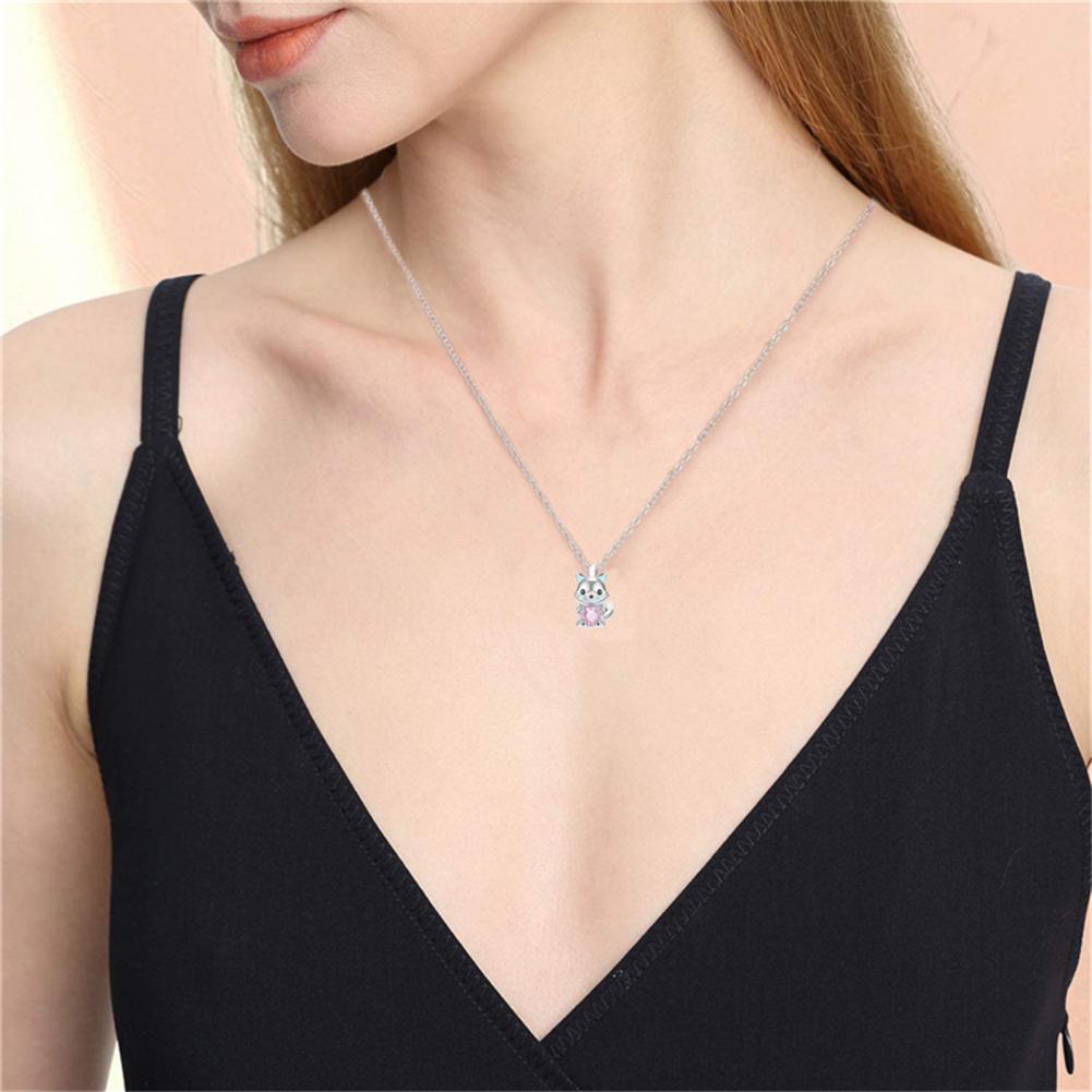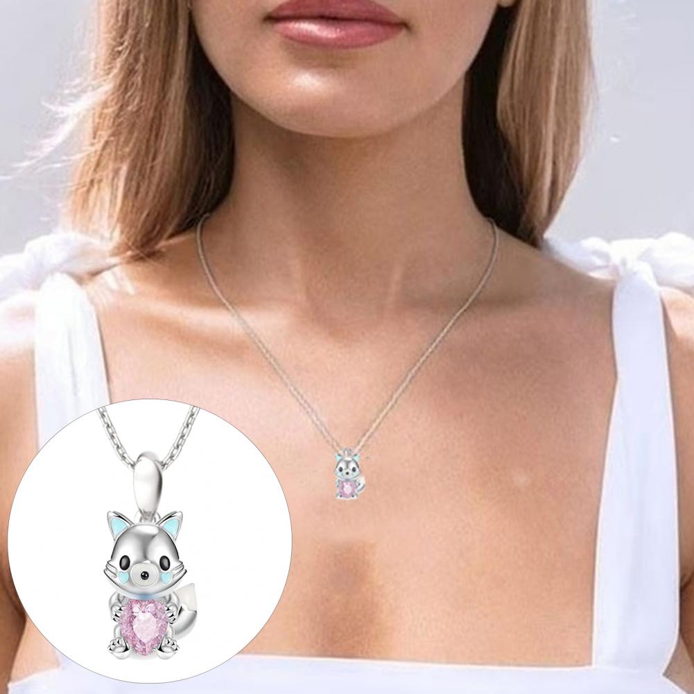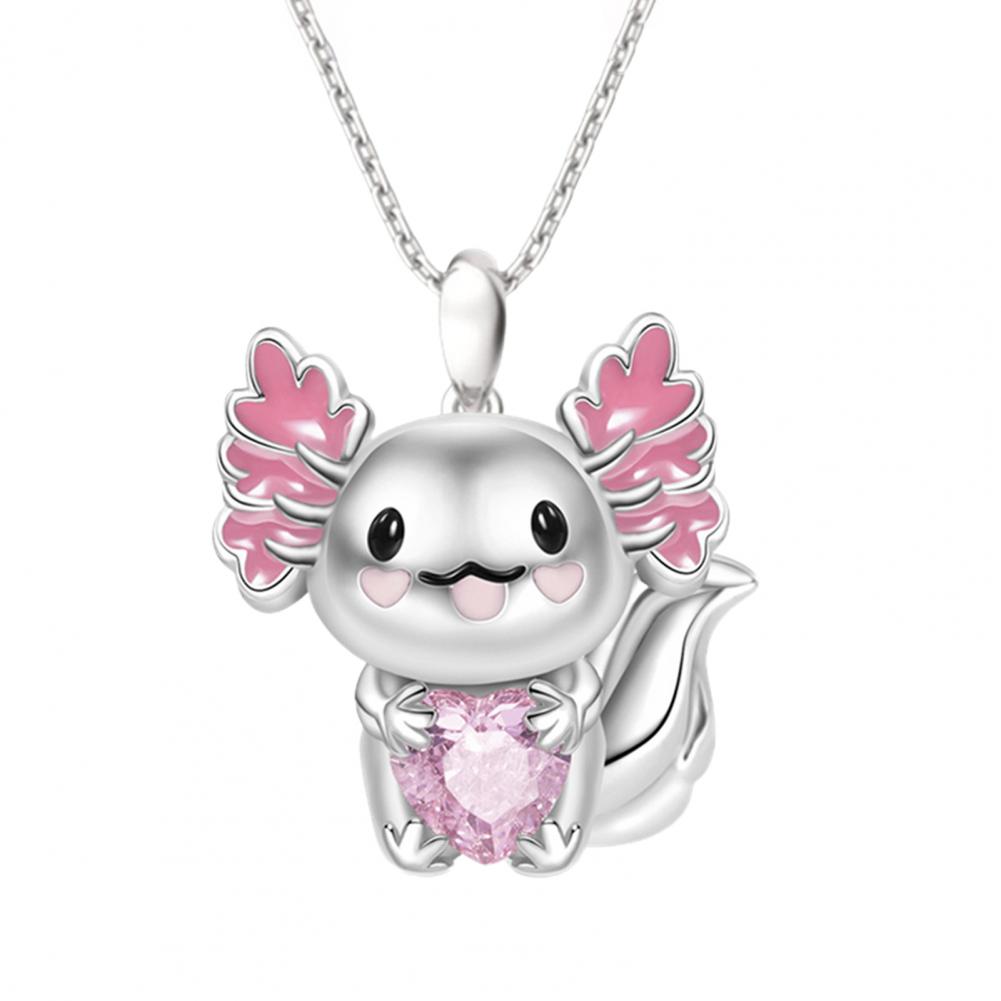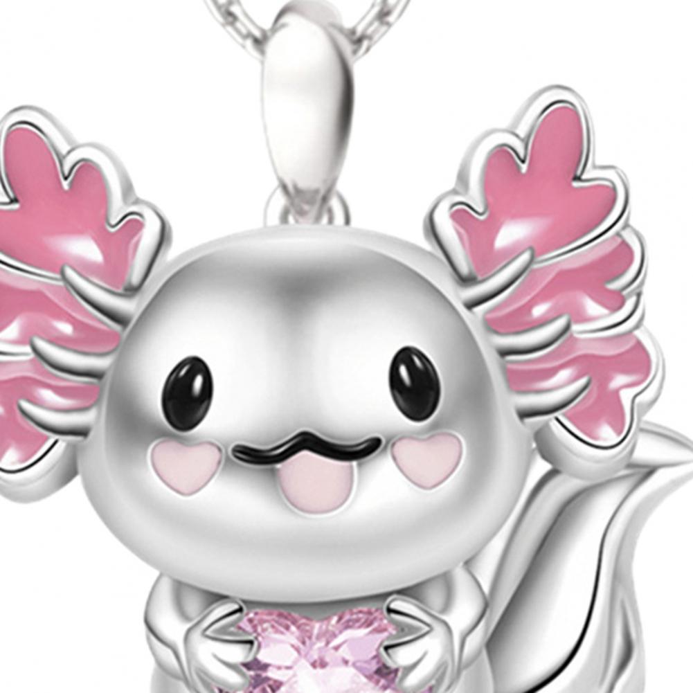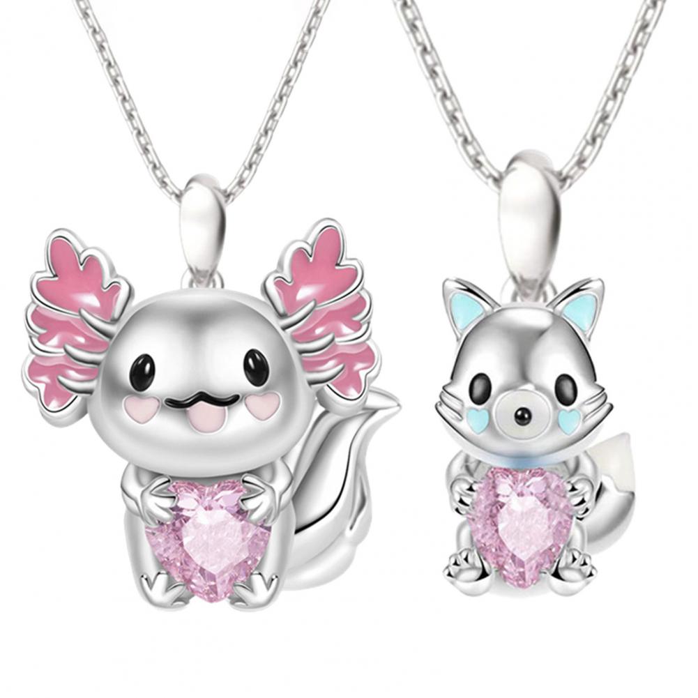 What makes this necklace look pretty, unique and stylish is the design of cute cartoon axolotl/arctic fox pendant and heart rhinestone decoration.
